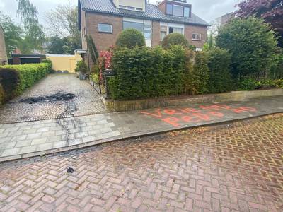 NIJMEGEN - Opnieuw is afgelopen nacht bij een woning aan de Gerrit van Durenstraat in Nijmegen een auto in brand gestoken en een leus op de stoep gekalkt. Dat gebeurde ook in de nacht van donderdag op vrijdag.