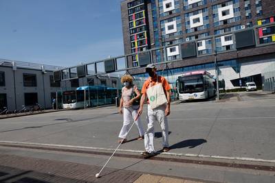 NIJMEGEN - Wie het station in Nijmegen verlaat betreedt een chaotische verkeerssituatie. Dit gaat veranderen maar dat duurt erg lang, vinden belangengroeperingen van slechtzienden. Dus stuurden ze maandag drie ambtenaren geblinddoekt de busbaan op.