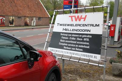 HELLENDOORN - Op de Reggeweg in Hellendoorn is maandagmiddag een automobiliste tegen een reclamebord voor fietsenwinkel Tweewielercentrum Hellendoorn gebotst. De bestuurster is door de politie meegenomen.